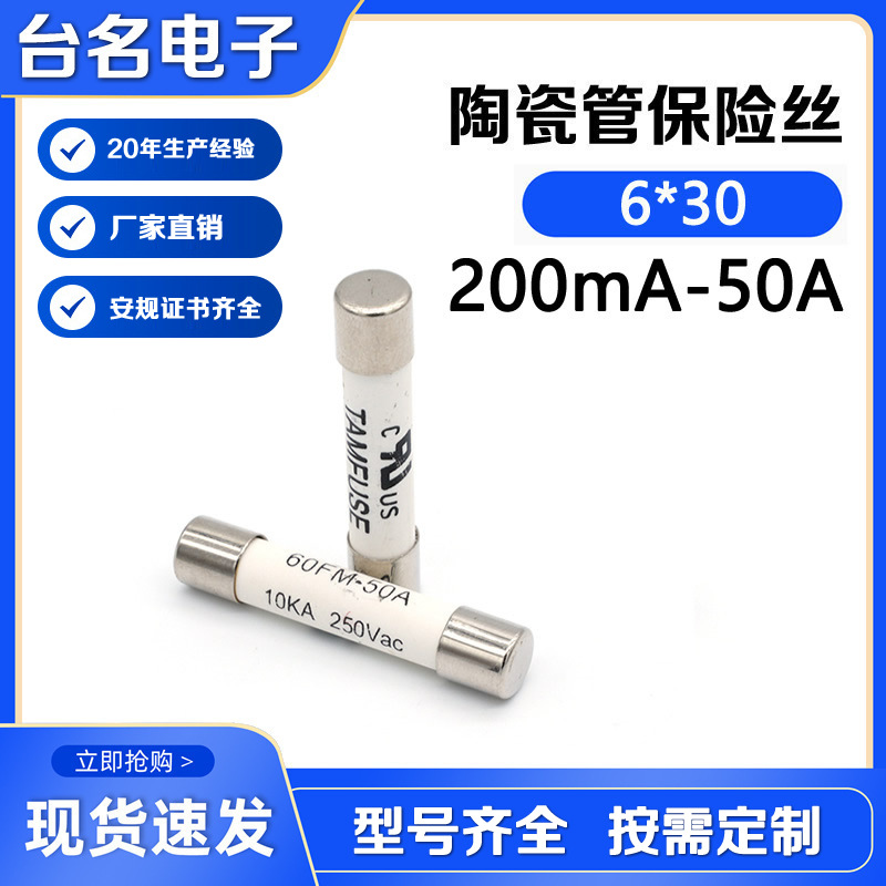 工場直販 6*30mm ヒューズガラス管 セラミック管ヒューズ シングル ダブルリードヒューズ メーカー