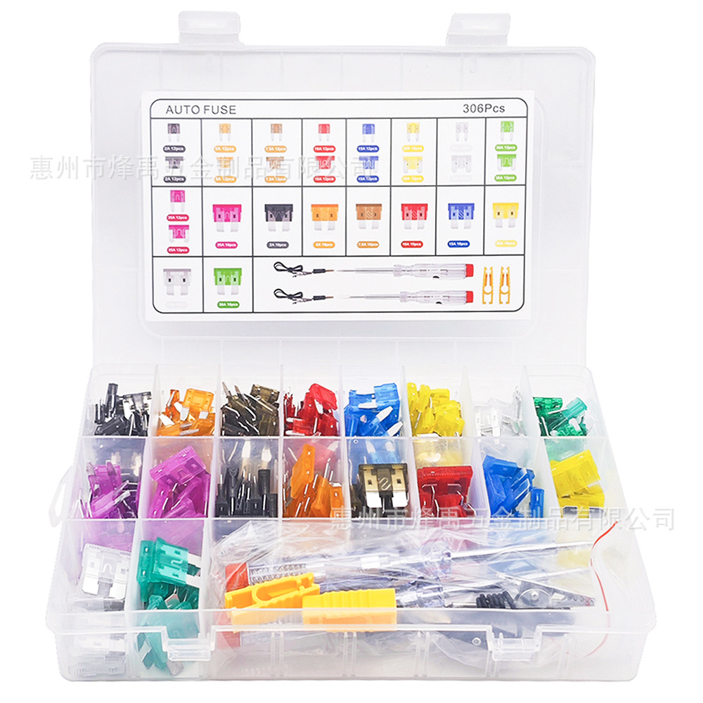 クロスボーダー306pcs自動車用ヒューズブレード中小ミニ亜鉛チップインサート式保険片試電ペンセット