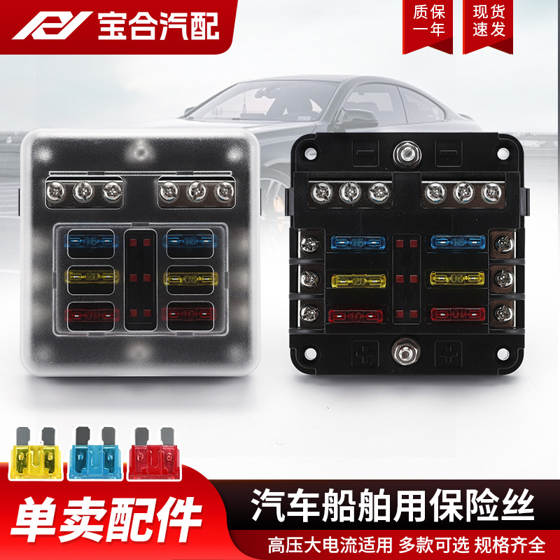 単正極6路ヒューズボックス適用中号インサート1入6出灯付き保険ボックスPC端子金