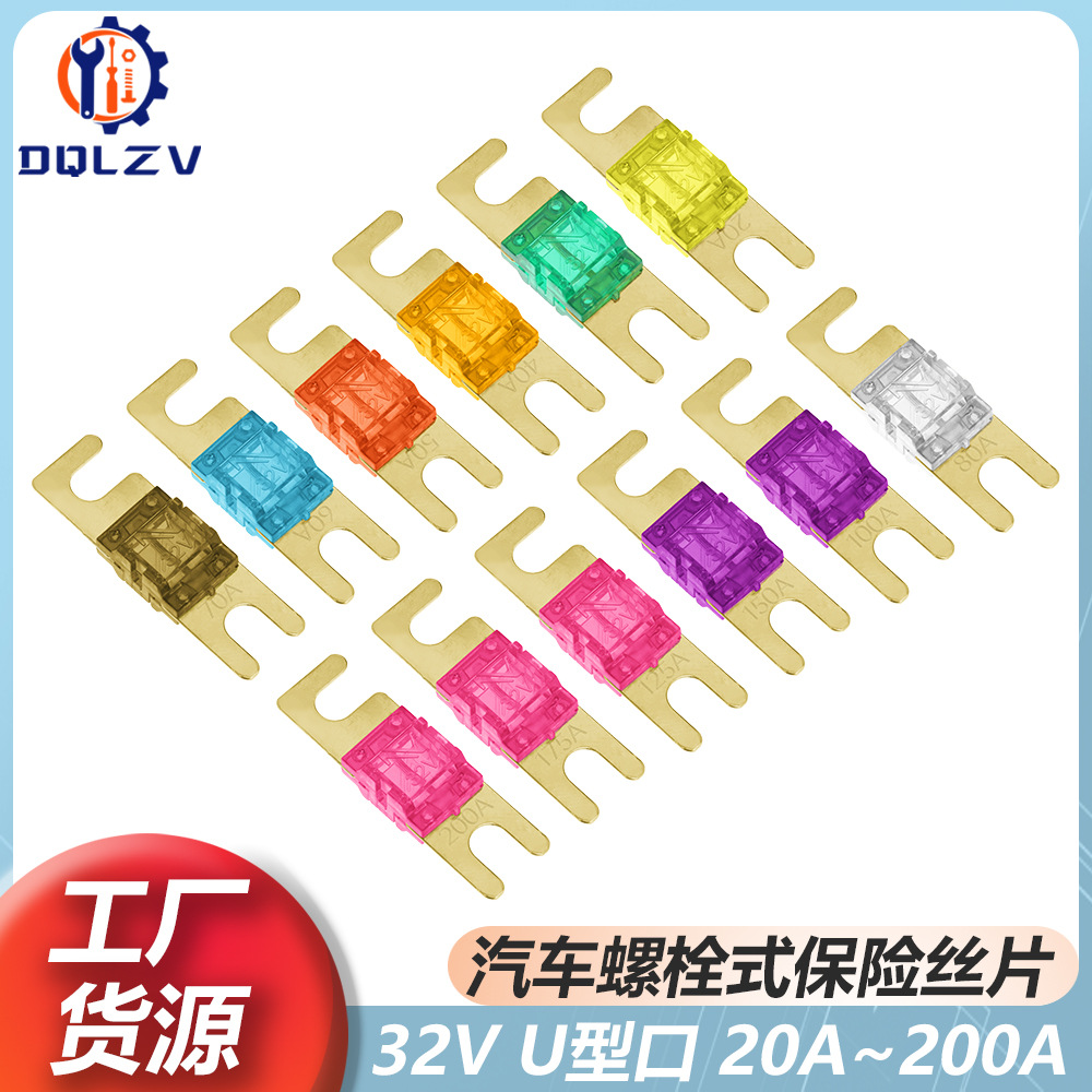 フォークボルト式自動車用ヒューズ 32V 穴付き ANS 小型平型 U型丸穴ボックス ANS ヒューズホルダー 高電流容量