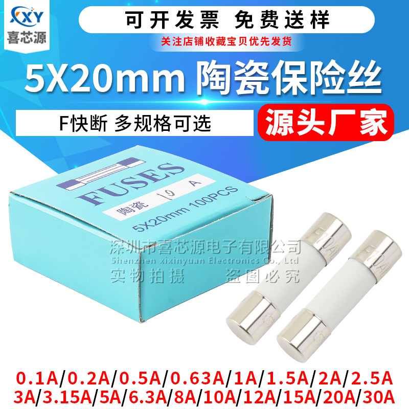5*20陶磁器ヒューズ管速断保護F0.5A/1a/2a/3.15a/5a/10a/15 a-30 a 250v