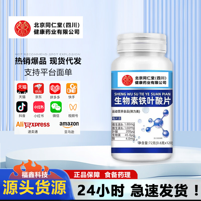 北京同仁堂(四川)健康药业 ビオチン・鉄・葉酸錠 120粒 ビタミンサプリメント