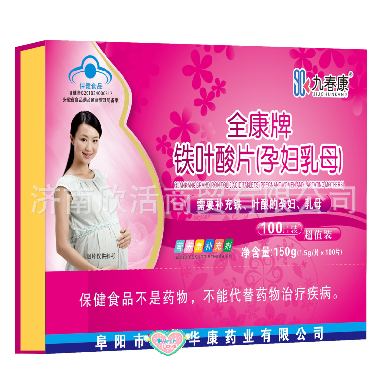 【サポートバッチ、代発】九春康全康ブランドの鉄葉酸片 (妊婦乳母)100枚の木箱