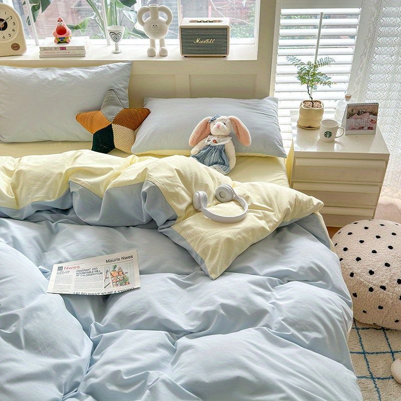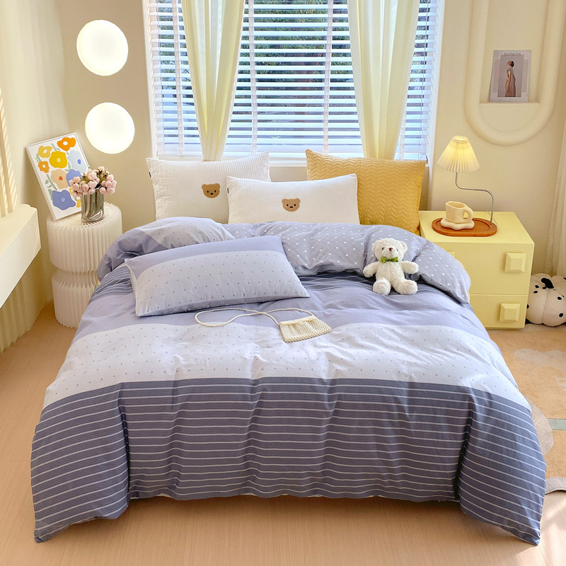 ウォッシュドコットン掛け布団カバー シングル 非綿純綿掛け布団カバー 4点セット 学生寮 シングル起毛シーツ 15 Shi Hua