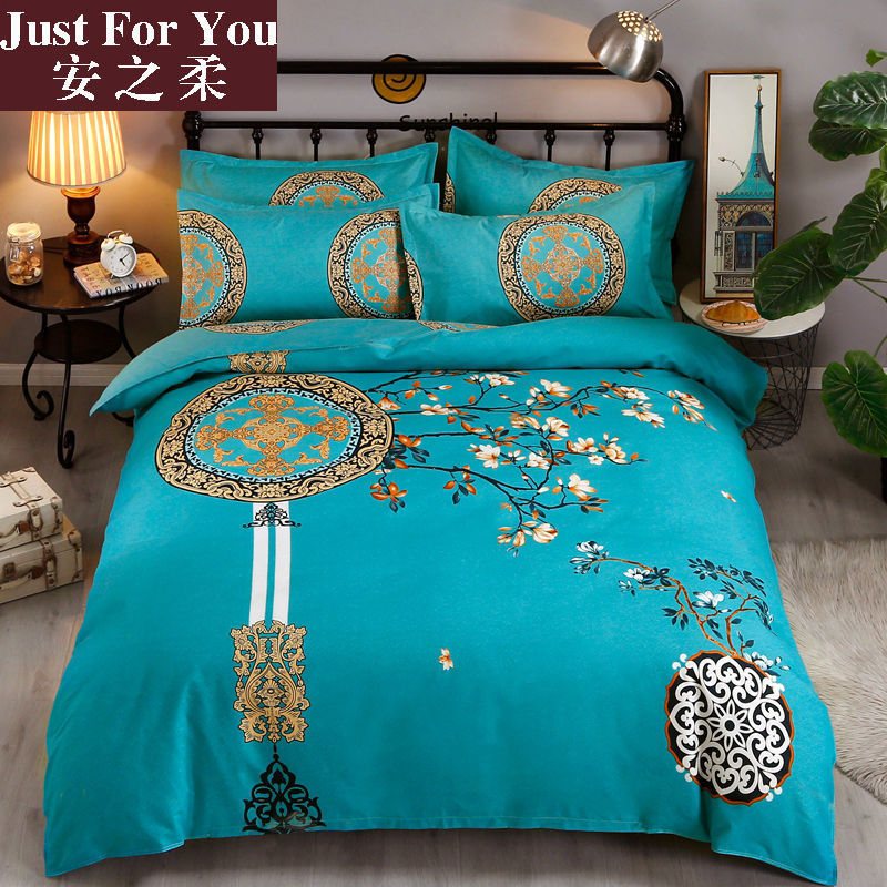 厚い大版花磨毛親肌非綿四点セットシングル二人シーツ布団カバー寮三点セットベッド威東
