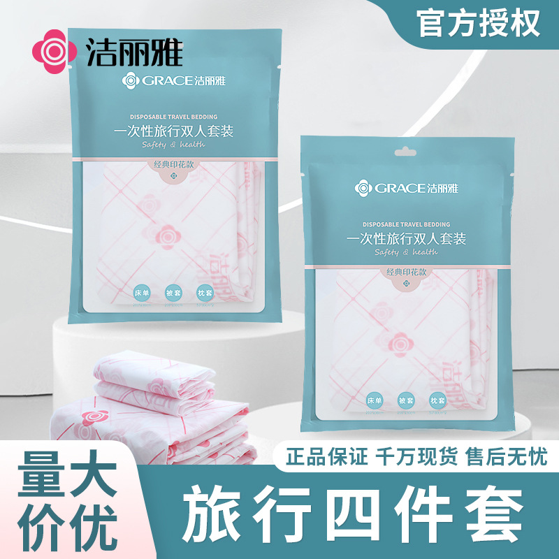 清潔麗雅使い捨て布団カバーシーツ枕カバー四点セット二人旅行携帯旅行ホテル寝具