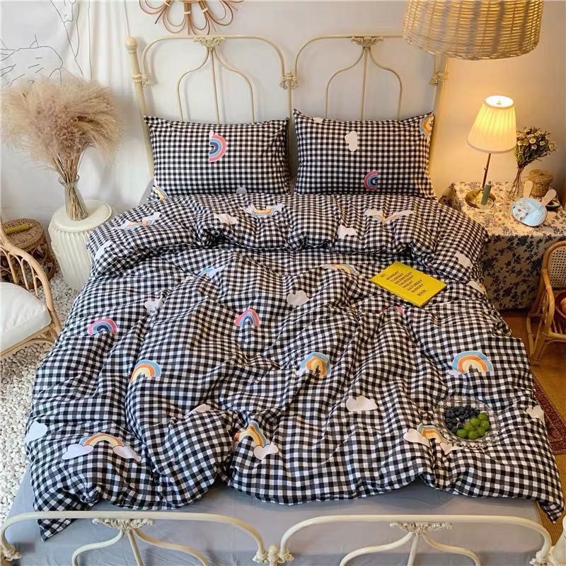 Ins風水洗綿格子布団カバー一枚150x200x230cmシングル布団カバー寮シングル布団三枚セット