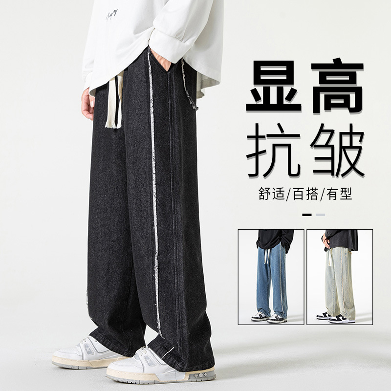 4方向ストレッチ【バゲットパンツ】2025年新作 ゆったり着痩せ効果 フレンチ風スリムストレートデニムパンツ 9909 # ファッション