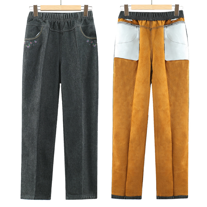 シェニールは女性の春と冬の直筒の中年のお母さんのベルベットのズボンを厚くして、子羊のベルベットの保温綿のズボンを厚くします。