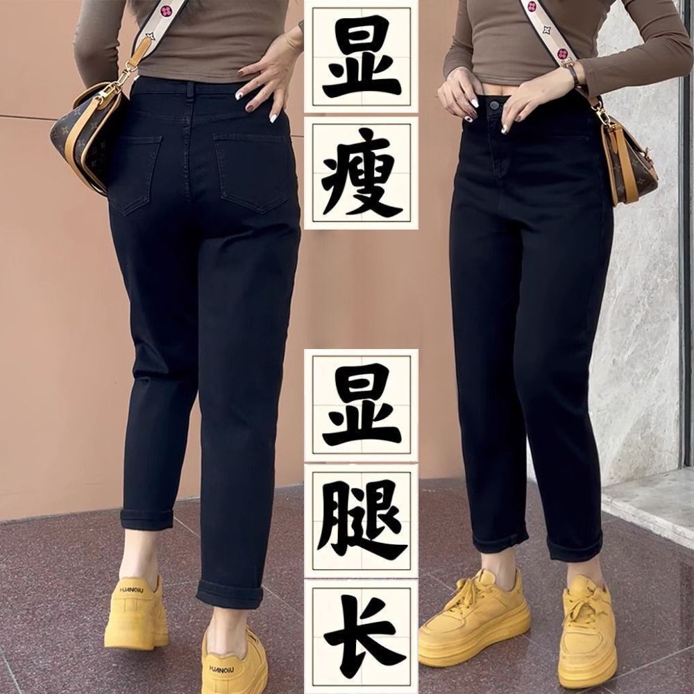 米白色高腰ハレンジーンズ女2024年秋冬ベルベットが痩せている