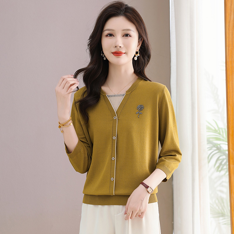 ママのカーディガン、レディースショートトップ、おしゃれな薄手のショール、夏用スカート、高貴なアイスシルクセーター