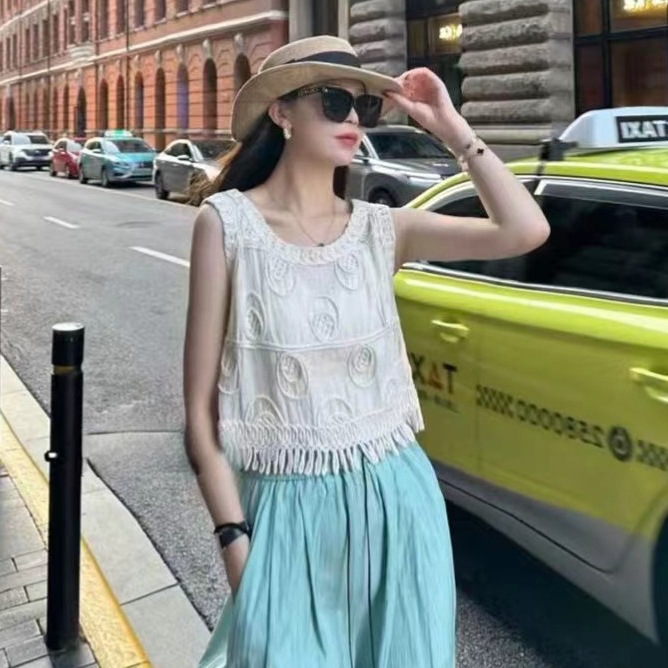 中空刺繍サスペンダー 2025 新しい夏スタイルスリムベストユニークで超見栄えの良いノースリーブトップ