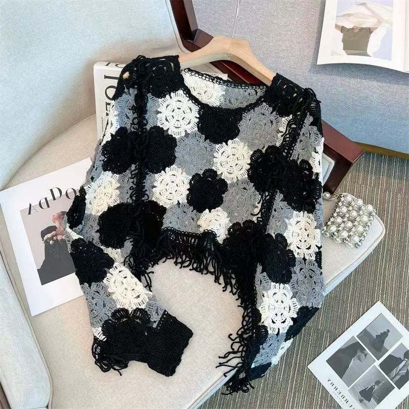 秋のデザイン中空タッセル長袖セーターレディース新しいスタイルシックなルーズスリミングアウターニッチトップトレンディ