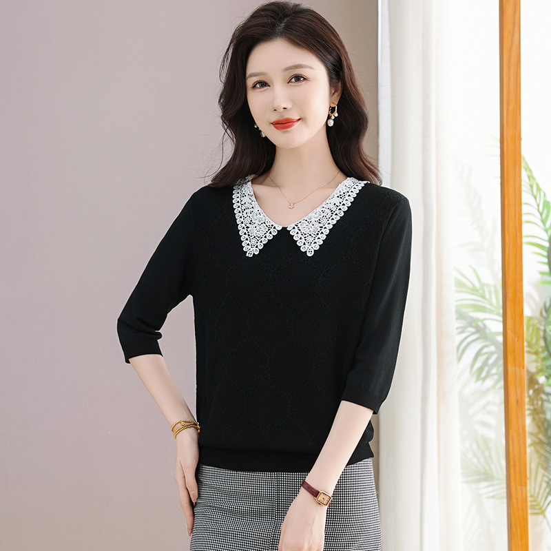 2025 新しいベビードール襟レースフレグランス半袖セーターレディーストップス春と秋の七分袖 Tシャツ