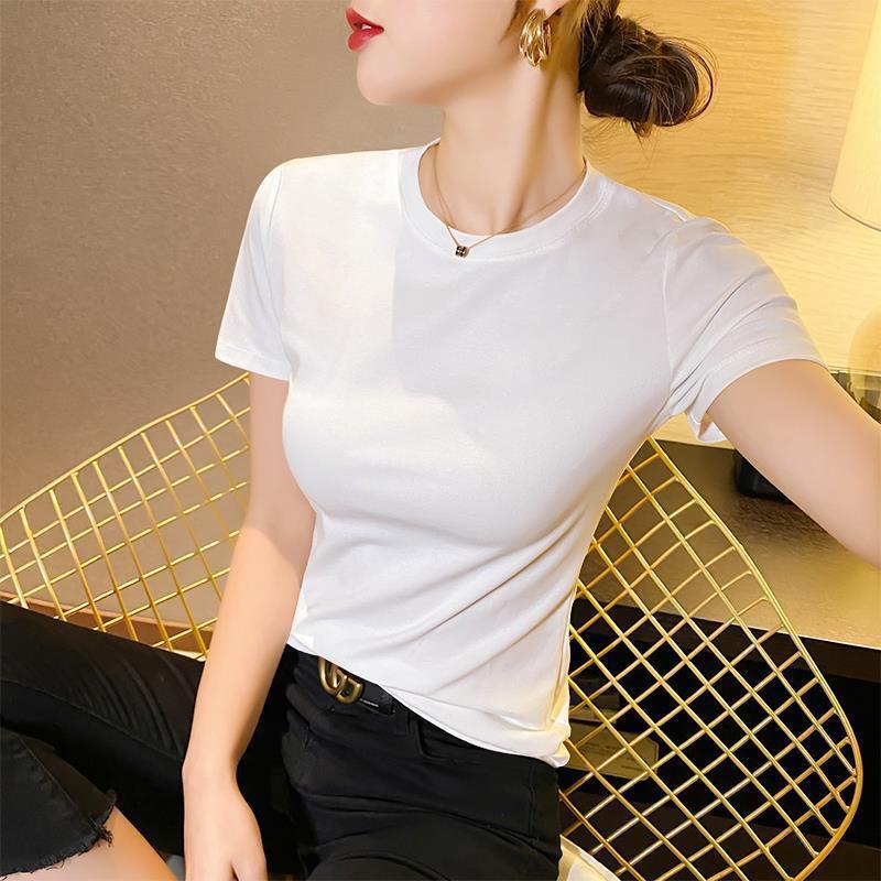夏服の氷糸半袖tシャツ女性夏の薄いニットの半袖丸首の上着の洋風がやせています。