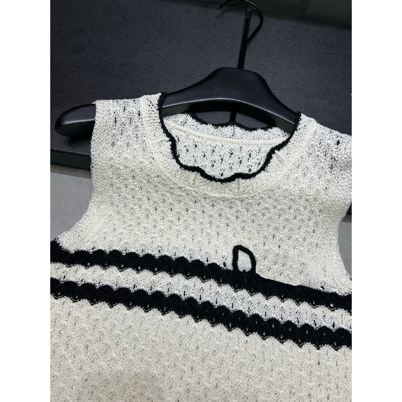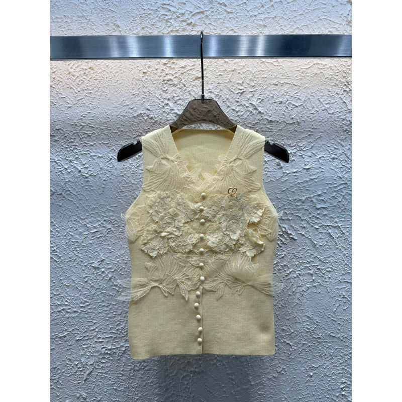 2025年新作夏ロエベクラフトレースステッチニットノースリーブシングルブレストベストスリムで万能なトップス