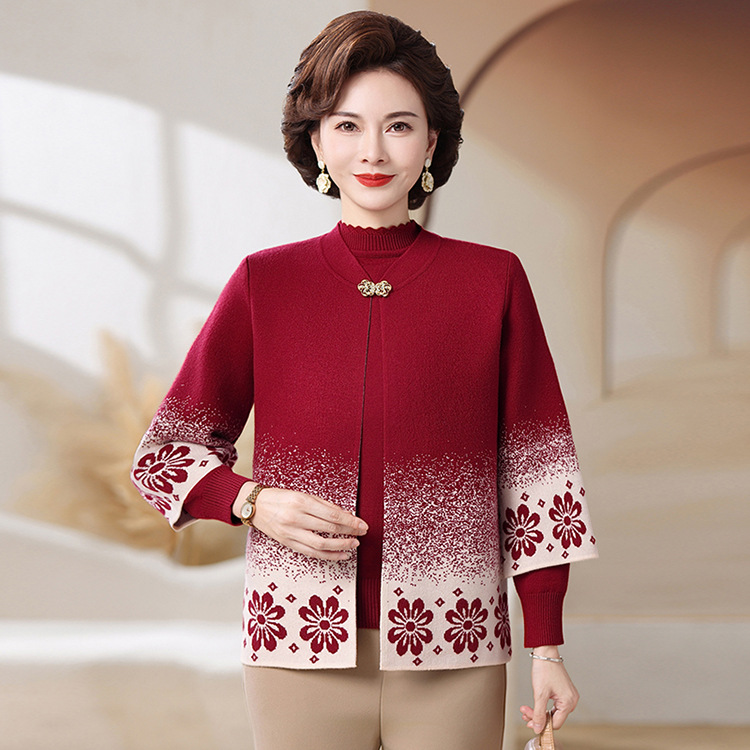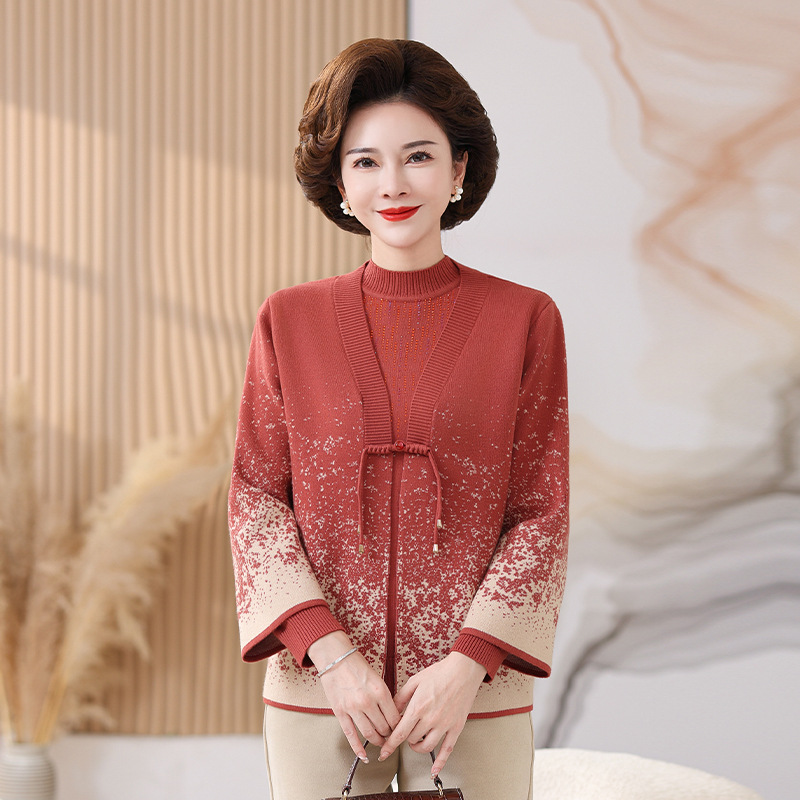 お母さんの服 春秋冬新作 ニットツーピースセット 中高年女性服 秋冬セーターカーディガンツーピースセット