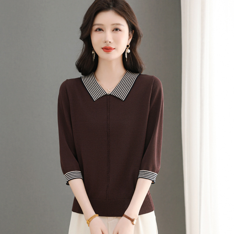 中年母親の秋のニットシャツ新しいスタイル卸売2025新しい中高年春と秋の半袖ボトムシャツ