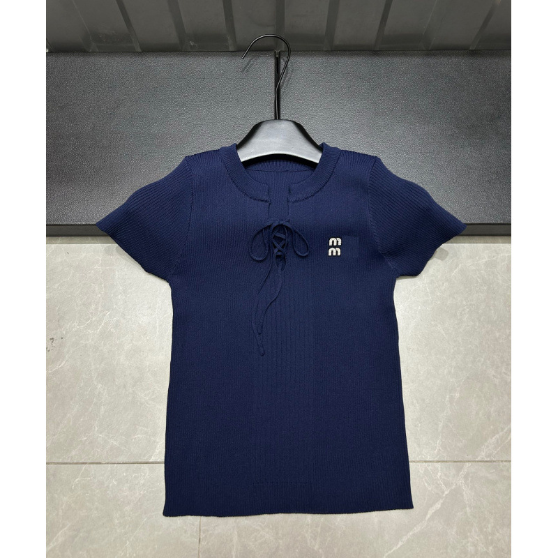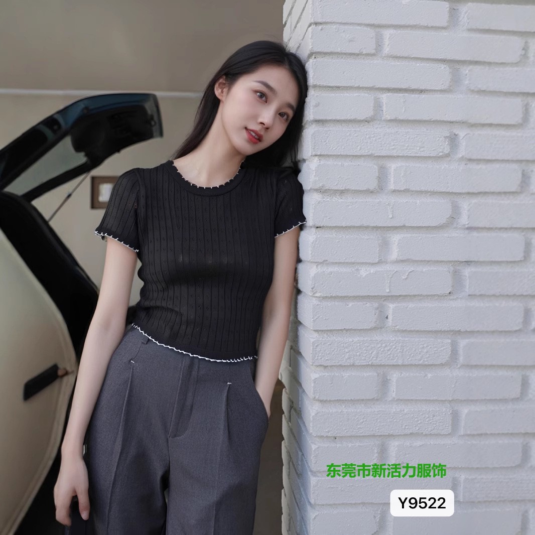 2025年新作夏nn小文字半袖ラウンドネックプルオーバー痩身万能レディースニットトップス