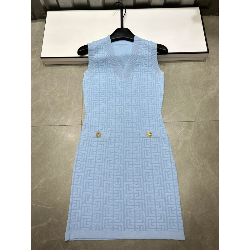 2025 新しい夏スタイルバルレリーフノースリーブ V ネックプルオーバードレスルーズで多用途の女性のニットロングスカート