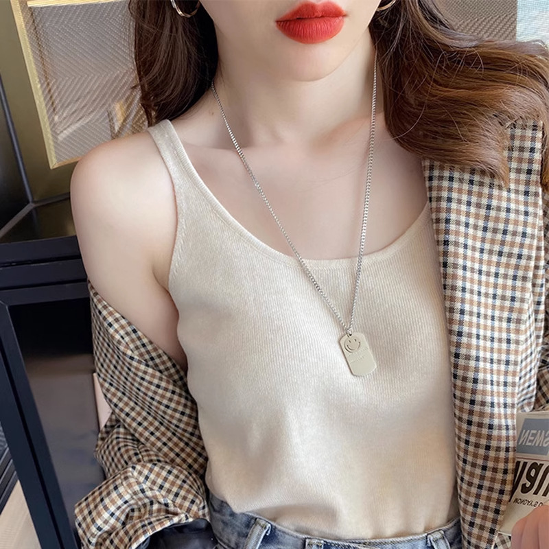 # 2025 新しいアイスシルクニットキャミソール女性のインナースーツベースデザインニッチルーズアウターウェア