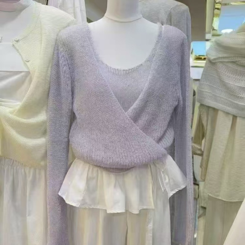 ラベンダージェントルスタイルモヘアベストカーディガン2点セット2025春夏韓国ニットアウタートップ女性用