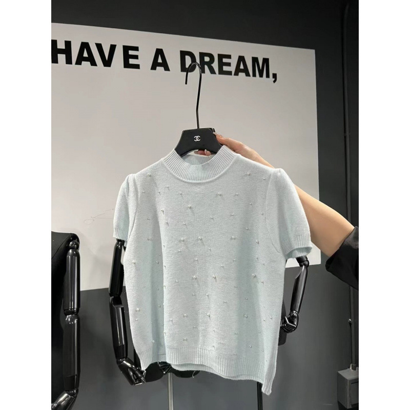 泡半袖釘珠氷糸ニット女2025年夏カジュアル洋風甘いギャルの短い上着