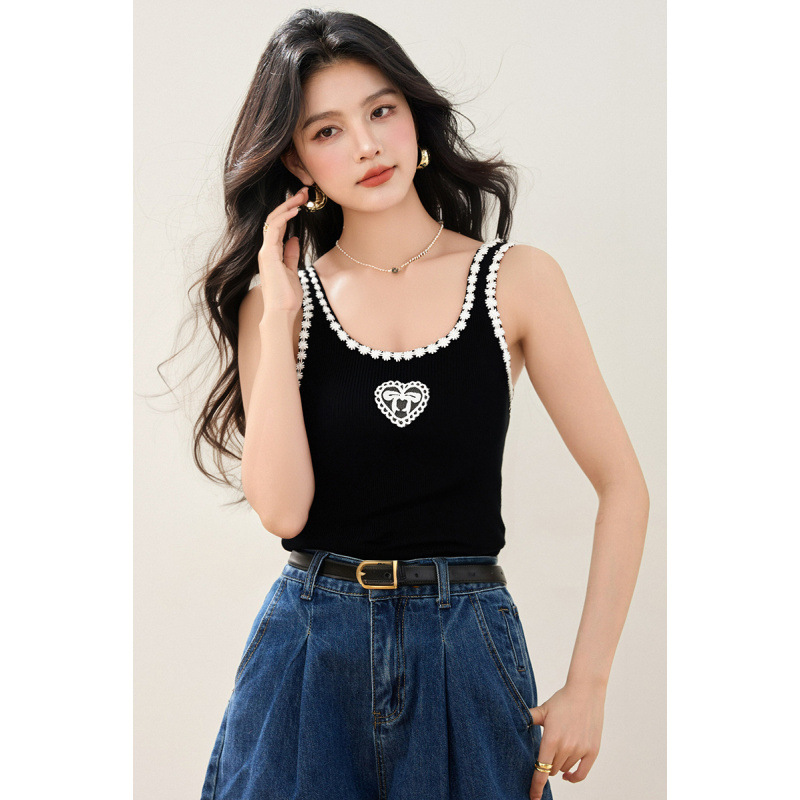 2025 新しい夏のニットセーターセクシーな黒のベストサスペンダーデザイン純粋な欲望のトップ