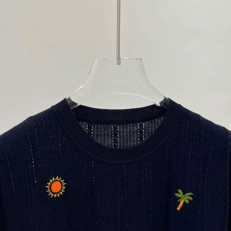 オールウール初春新作リゾートビーチ刺繍ファインケーブル薄手半袖Tシャツニット