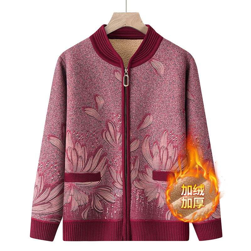 高齢者の秋冬コートのおばあさんのセーターにベルベットをつけて、お母さんのカーディガンの新しい中国式保温おばあさんの服の女性を厚くします