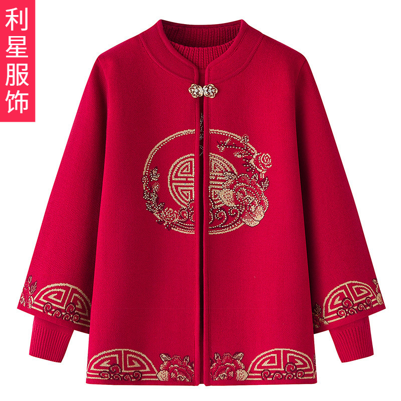高齢者秋冬服女性コートセーターカーディガンおばあちゃん春秋スーツ奥さん服お母さん唐服2点セット