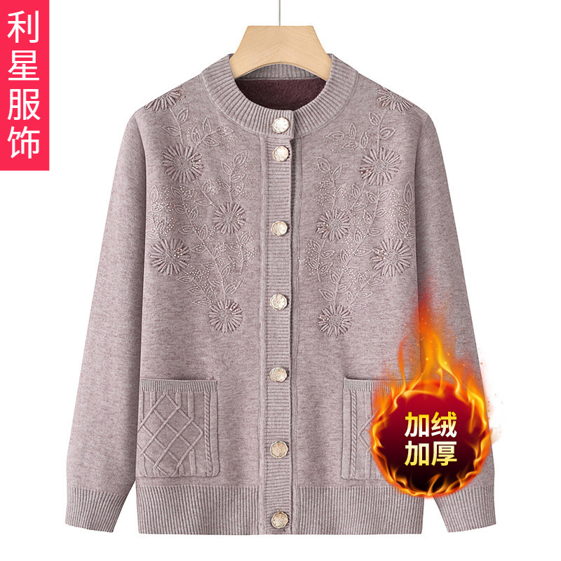 源工場製の高齢者向けコート、秋冬服、おばあちゃん用セーター、女性用春秋服、お母さん用ニットカーディガン