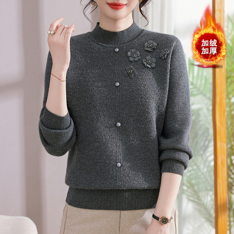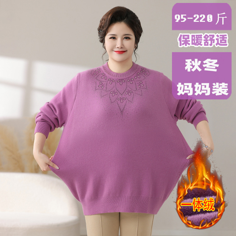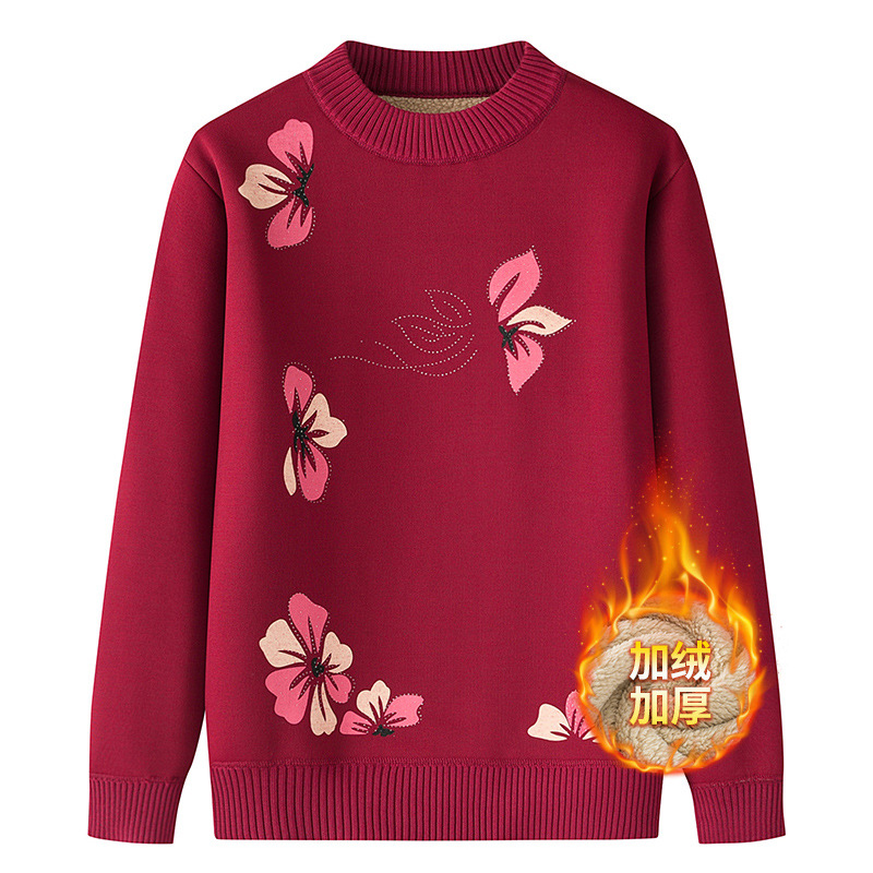 お母さんの冬服、裏起毛セーター、新作、中高年女性向け、秋冬用、厚手、一体型裏起毛、保温性のあるインナーウェア、大きいサイズ