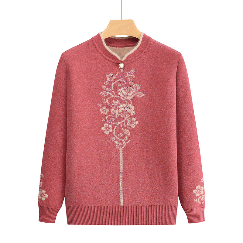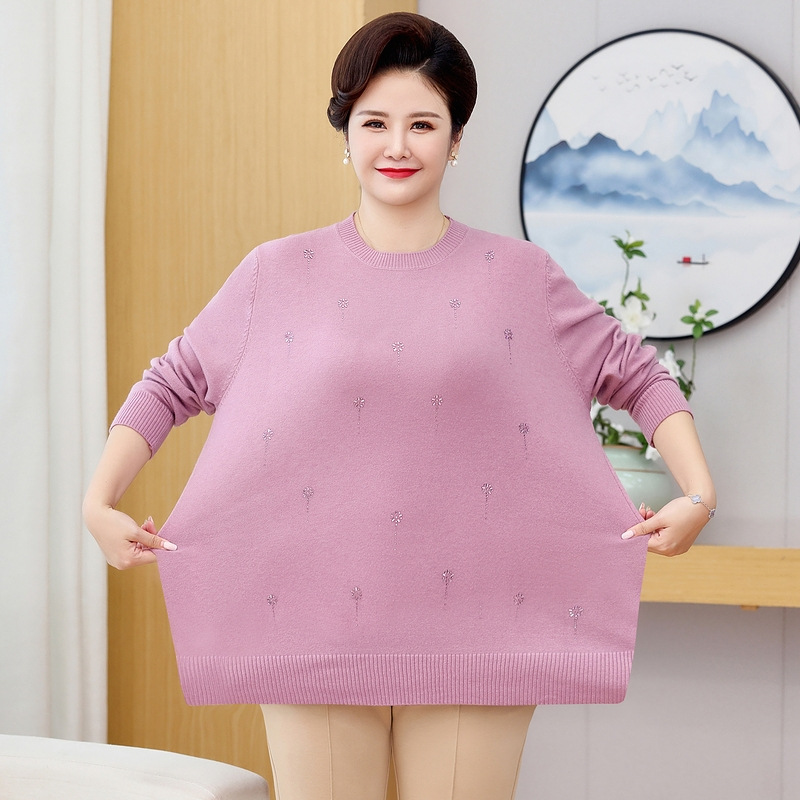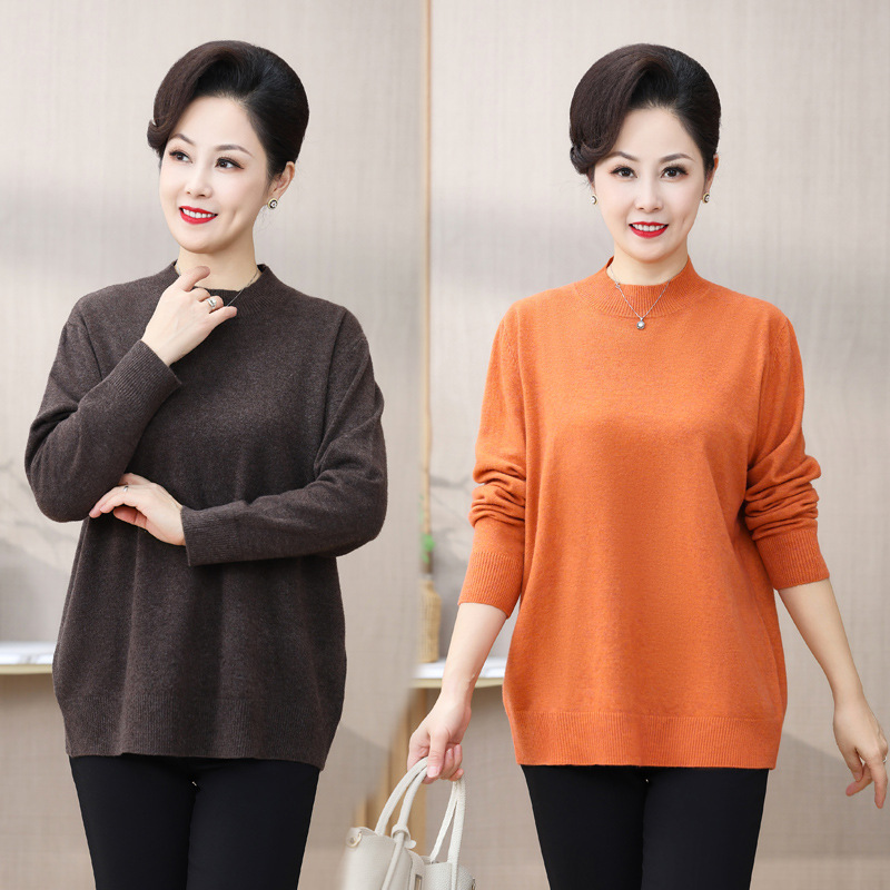 中年女性向けニットセーター、中高年女性向け秋冬インナーウェア、ラウンドネックプルオーバー、中高年女性向け服