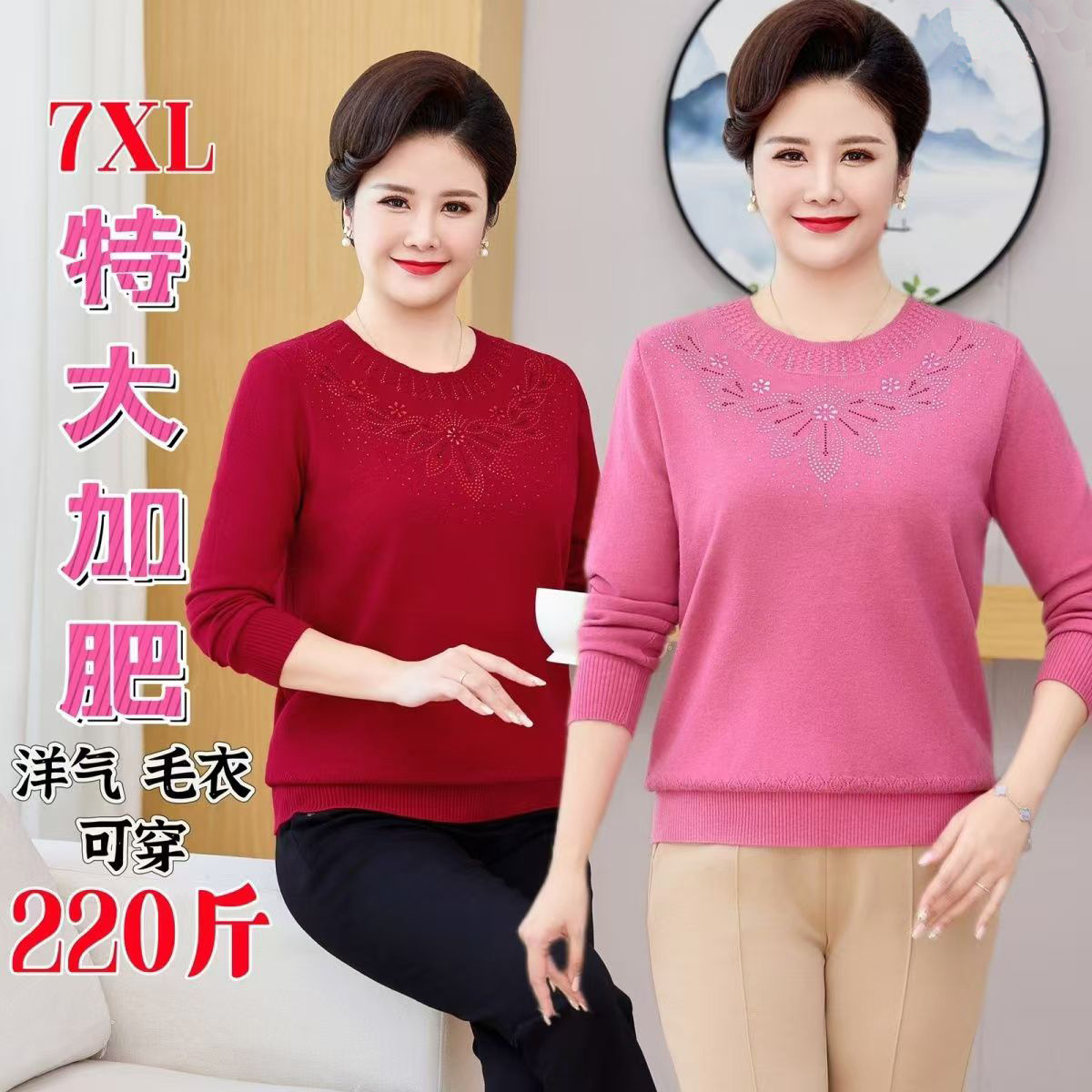 おしゃれな太ったお母さんの新しい上着の大きいサイズの中高年秋冬の底のニットの羊のセーターの女性tは200斤ゆったりしています。