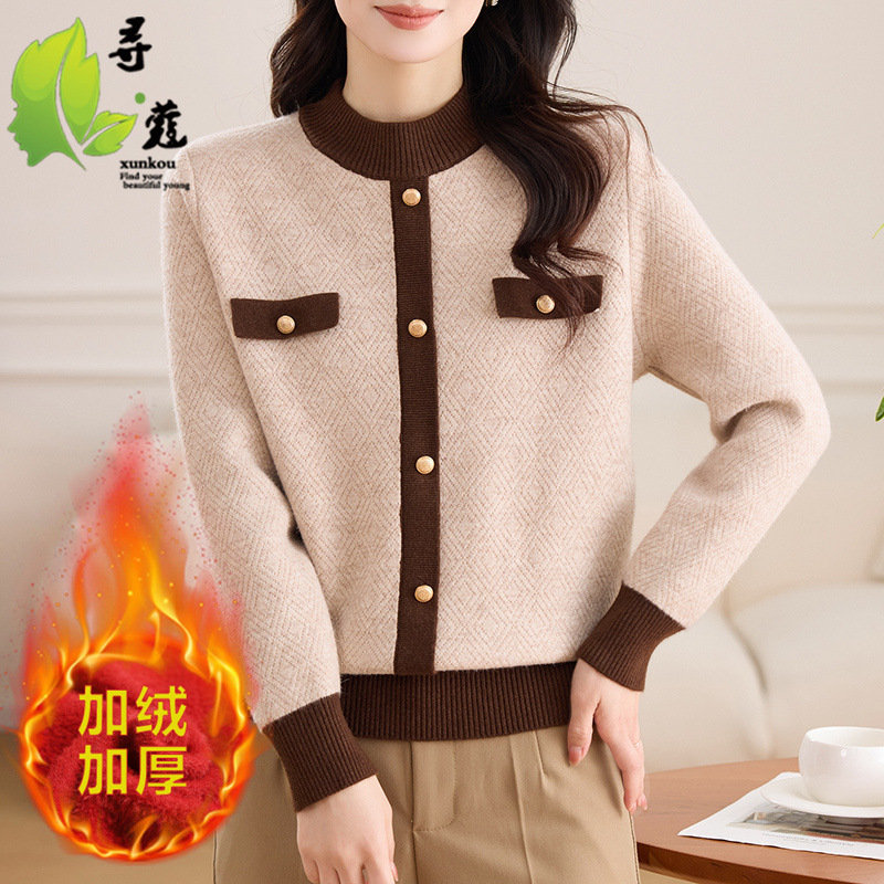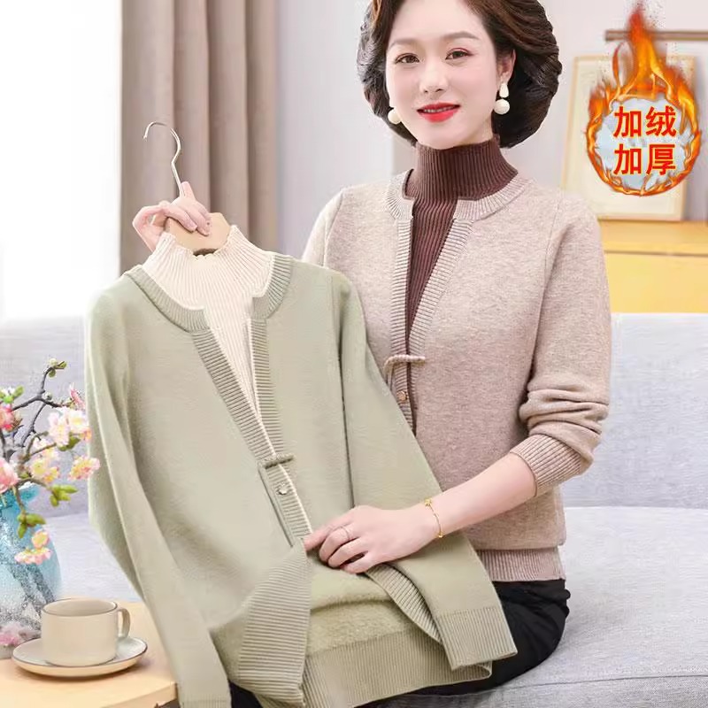 お母さんはベルベットのセーターを着て、高齢者は冬服のシャツを厚くして、女性の保温上着を着て、女性のセーターを着ています