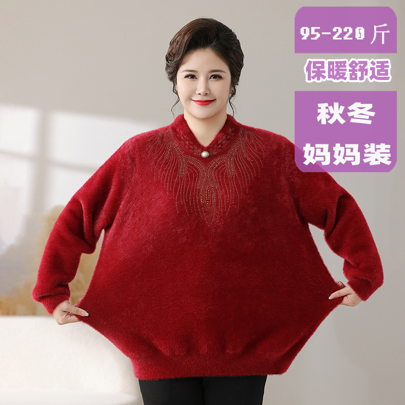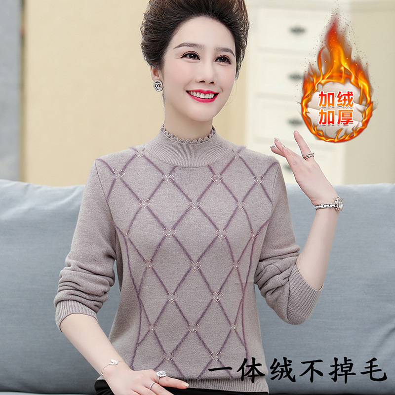 洋気のお母さんの秋冬の新型の厚いウールのセーターの中で老年のカシミヤの底のシャツのゆったりしている大きいサイズはドリルのセーターの女性を入れます。