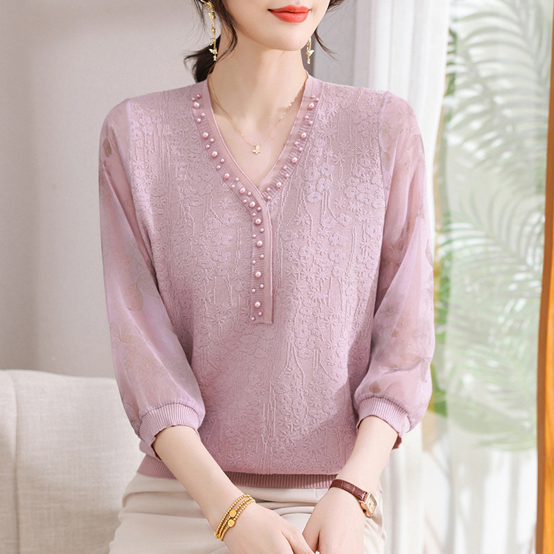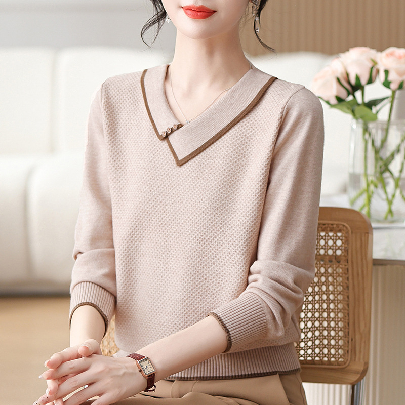 2025年新作ママ向け春服ニットセーター、おしゃれでファッショナブルな中高年女性向け春秋長袖トップス、40歳50歳向け