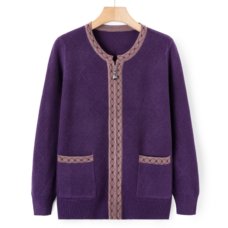 中高年女性おばあちゃん春秋服セーターカーディガン60歳70母服秋冬コートカジュアルファスナー上着