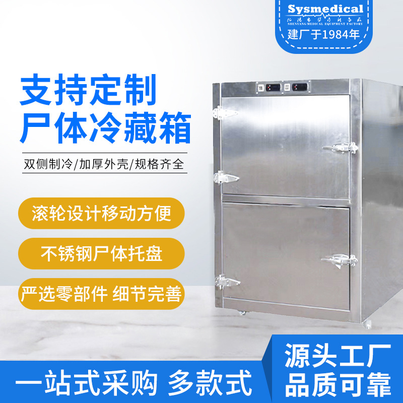 太平間冷凍設備死体冷蔵箱低温二具二重ドア遺体安置所冷蔵庫死体冷蔵戸棚