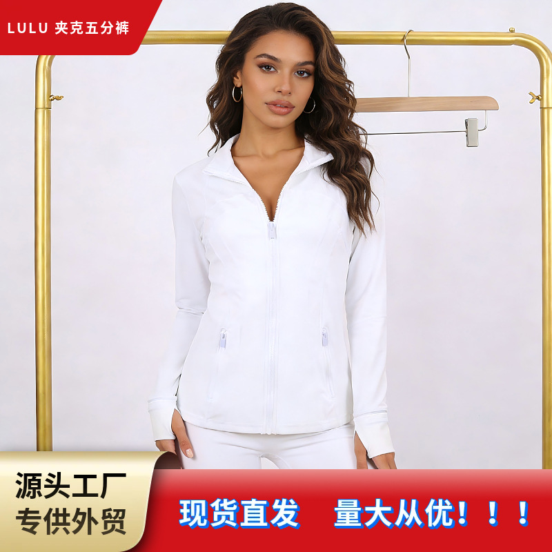 LULU DF ショート丈スタンドカラージャケット タイトフィットスタンドカラー伸縮性ジャケット ゴールドジッパー フィットネスヨガウェア