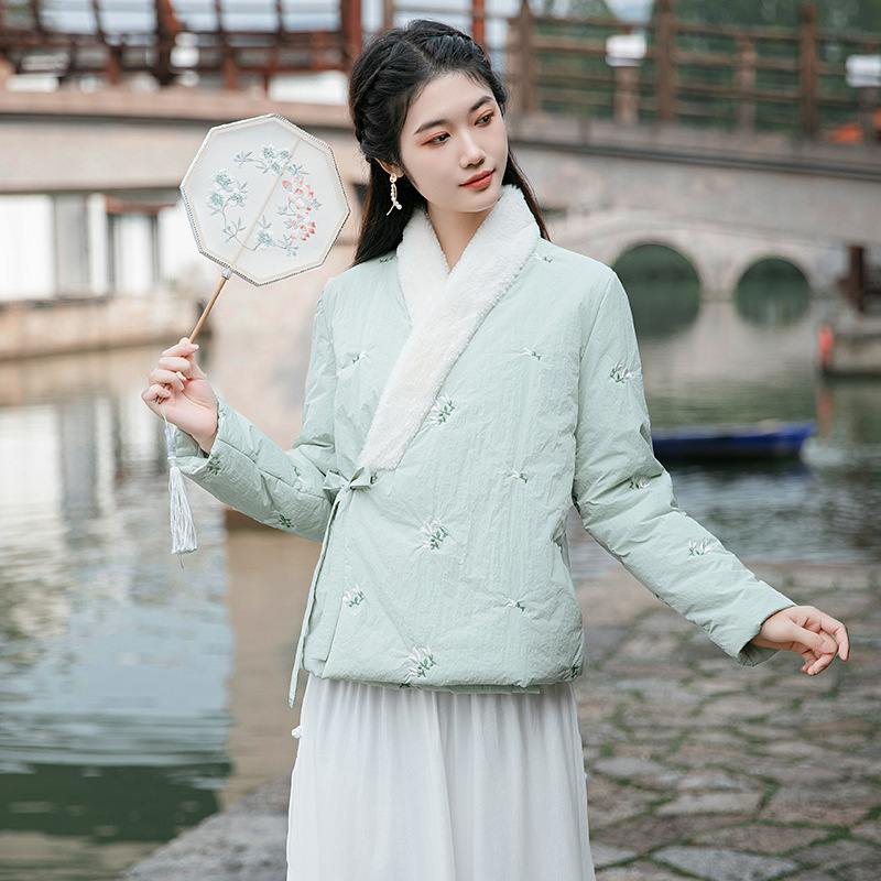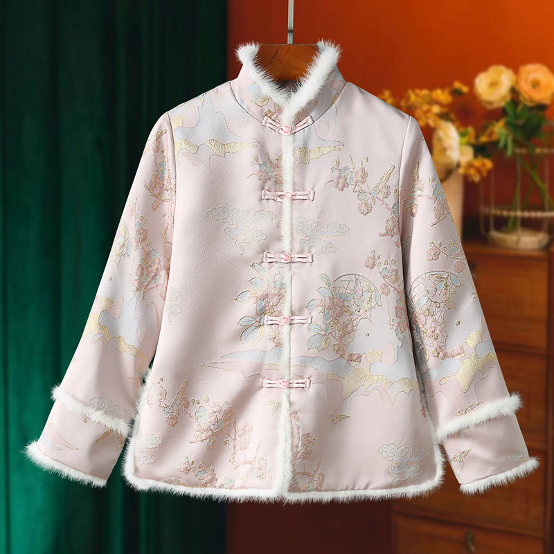 代発2023秋冬新作刺繍レトロ模造ミンク毛襟厚手中国風唐装上着3686