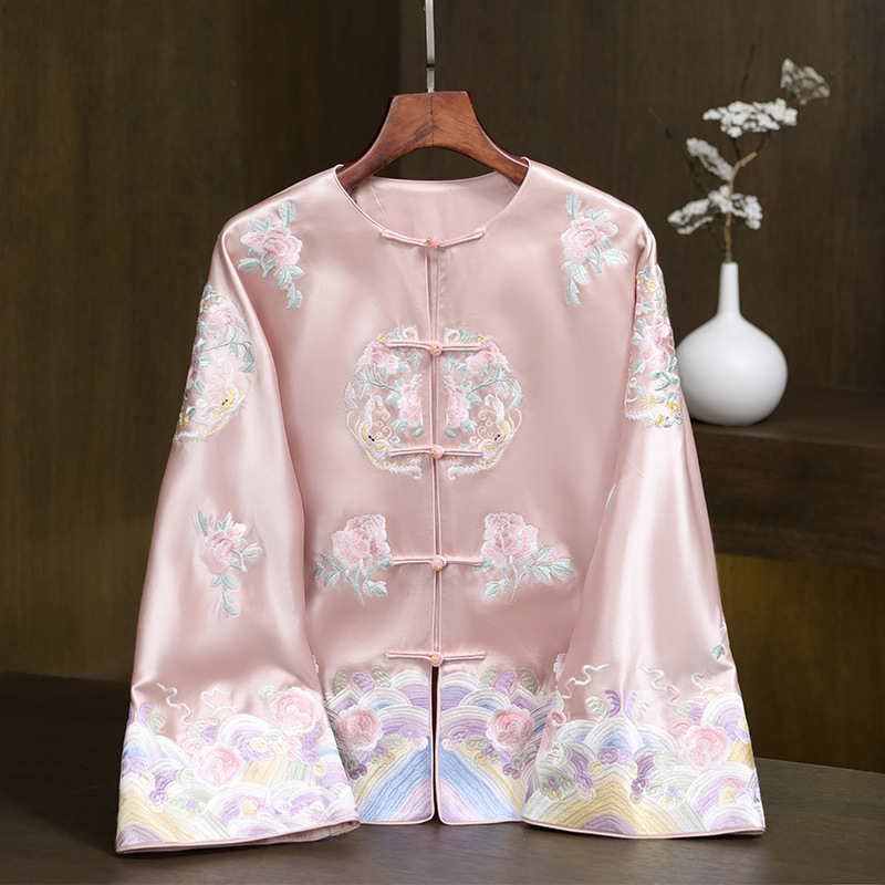 2025春の新型重工刺繍酢酸コート復古新中国式国風盤ボタンが精巧で優雅な唐装女
