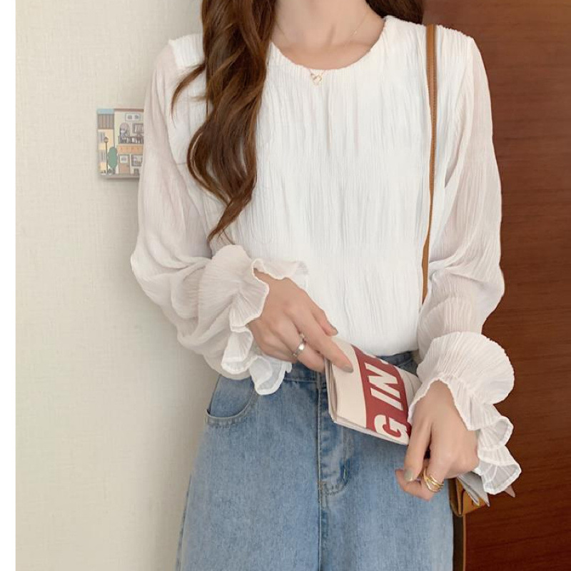 外国貿易日本春秋冬韓国の新型シワシフォンのシャツはゆったりしています。