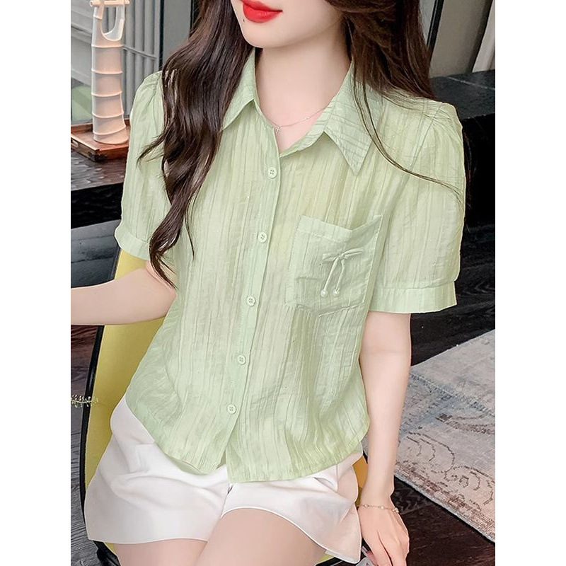 2025年夏の婦人服新型ファッション洋気polo襟半袖tシャツ減齢気質シャツ雪紡織上着