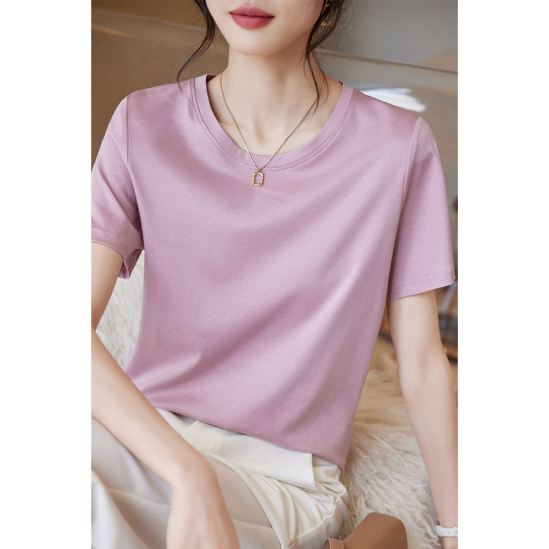 マルベリーシルクハイエンド半袖 Tシャツ女性のための 2025 新しい無地シルケット綿ルーズ半袖 Tシャツトップ夏