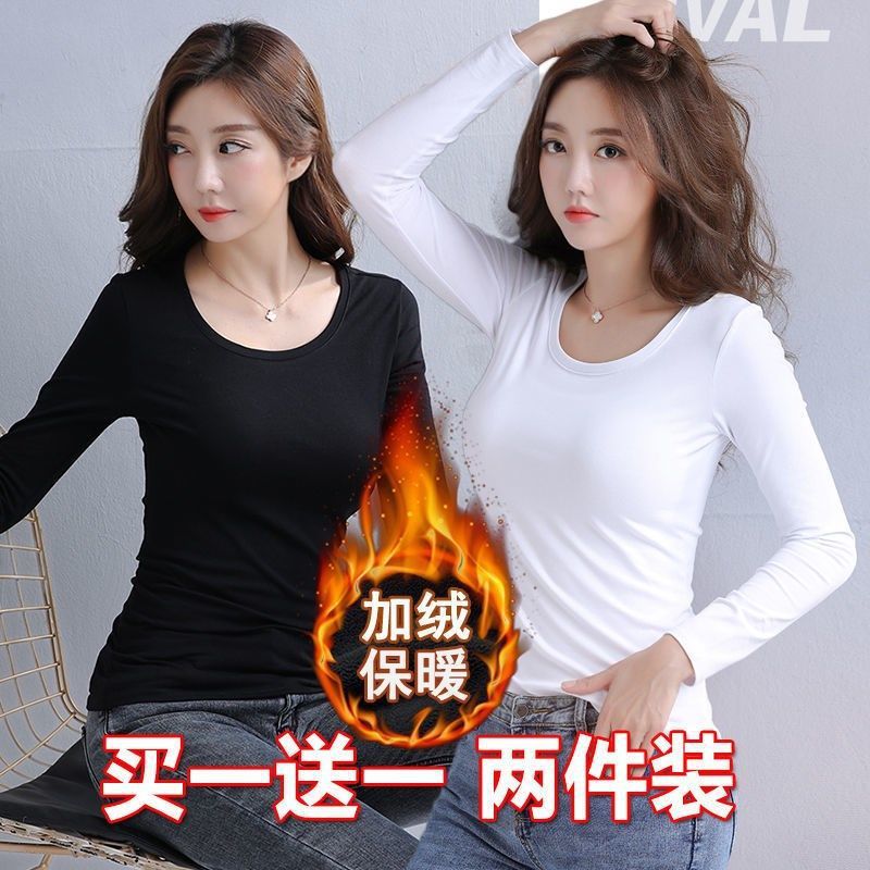 冬の新型の保温底のシャツの下着の女性のベルベットの厚い修身の中で丸首の長袖のtシャツの上着のzaawを掛けます。