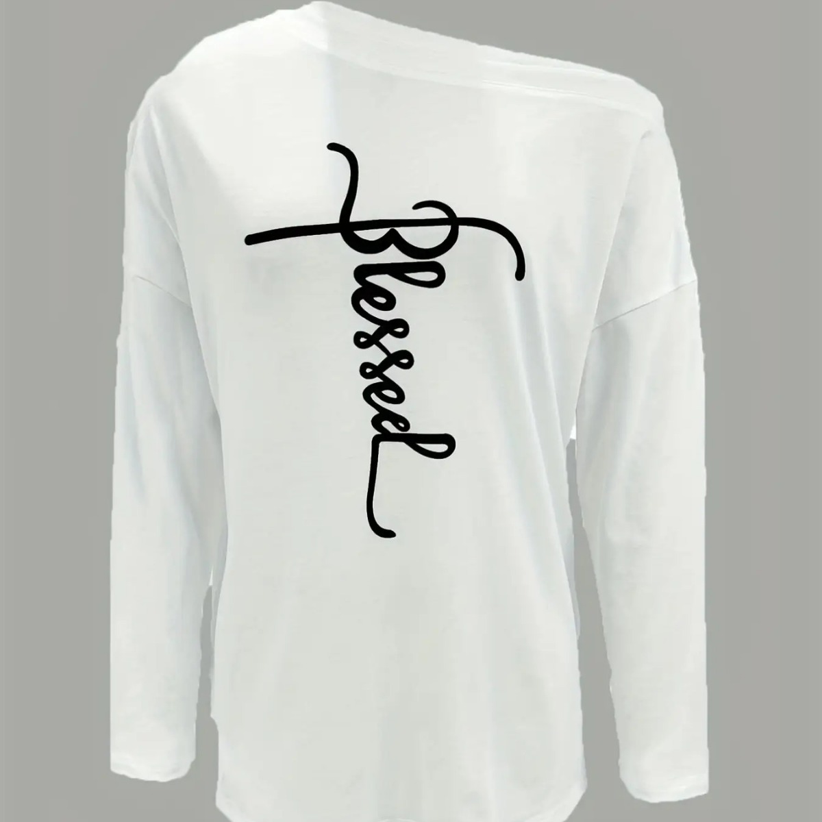2024秋に発売された欧米のアマゾンebayカジュアルな肩の丸首プリントのゆるいtシャツの女性の上着
