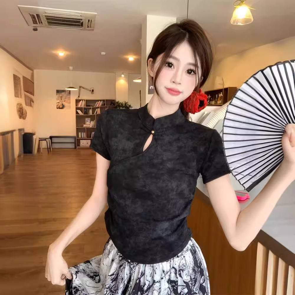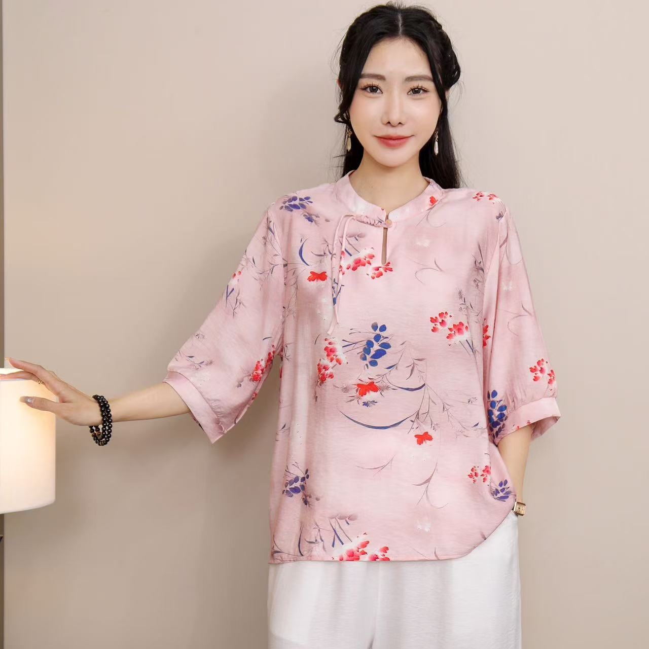 2025夏の女装中国風改良唐服女性上着半袖復古文芸民族風観光服装シャツ