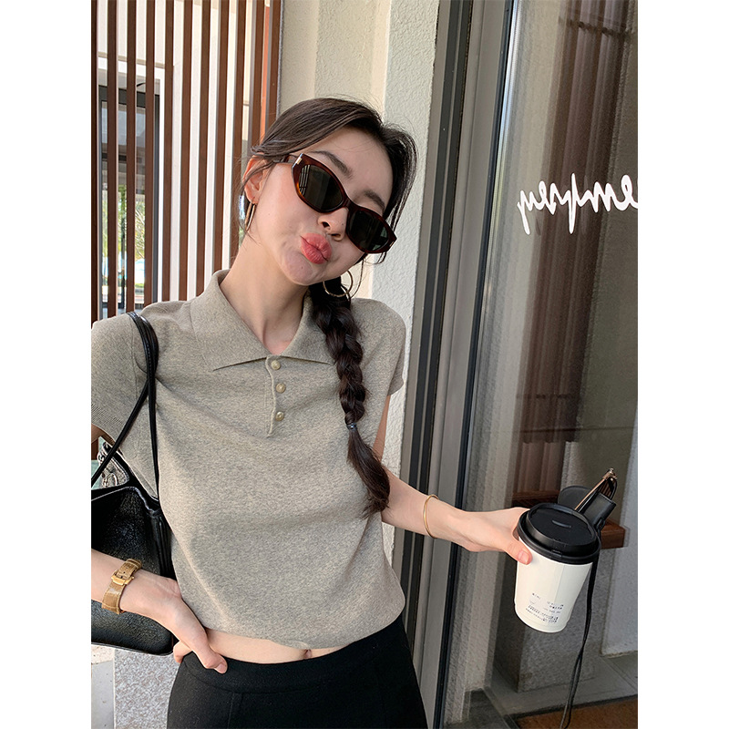 香港米富家の女性poloシャツの上着の女性の高級な短いタイプの通気性のニットの半袖のtシャツの2025春夏の新商品